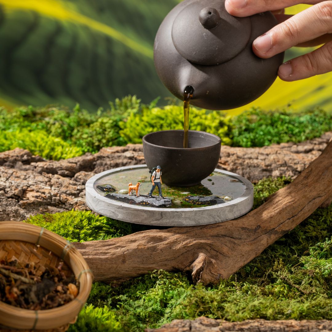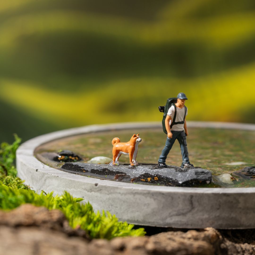 Capture the peace of a hidden woodland trail with a mossy, abandoned pond with your little companion. Cozy forest mornings, warm drinks, and the quiet peace of the outdoors.